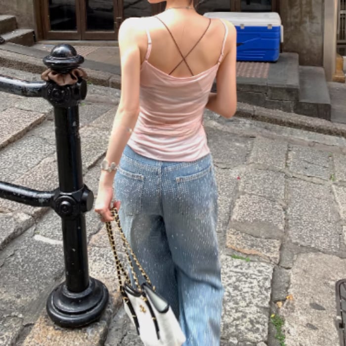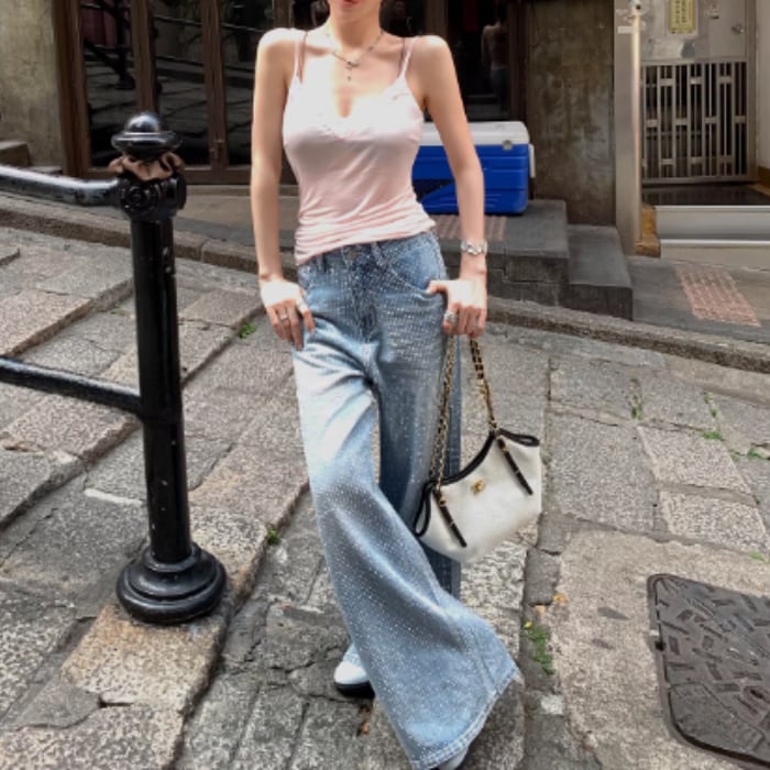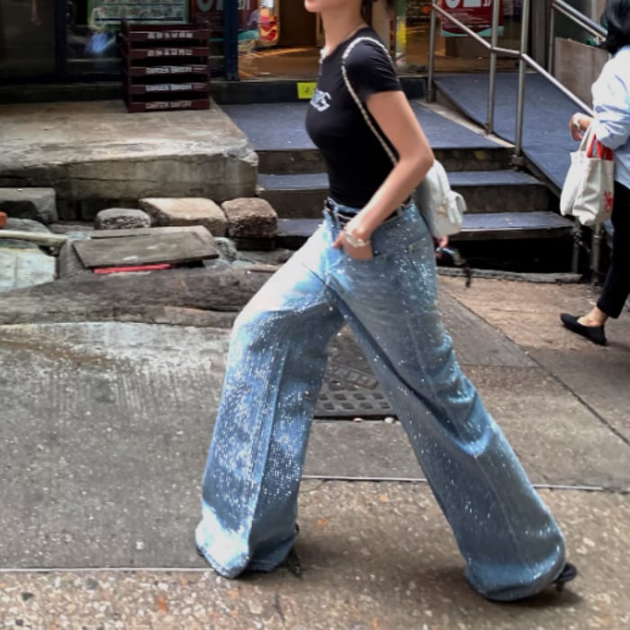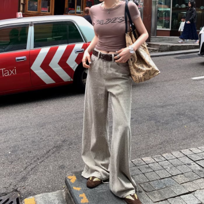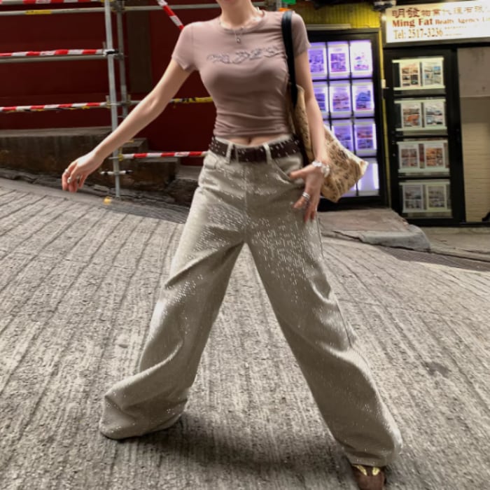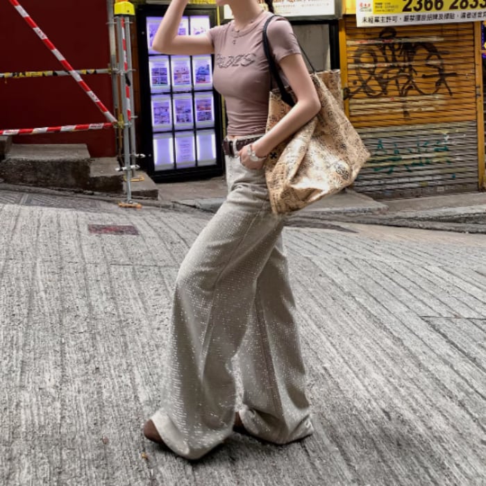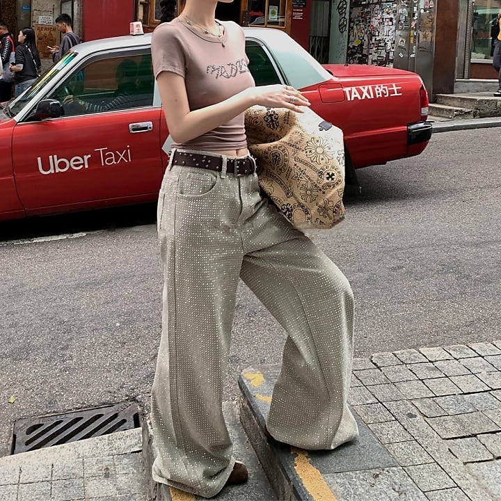 オールオーバーラインストーンワイドデニムパンツ[S-L]