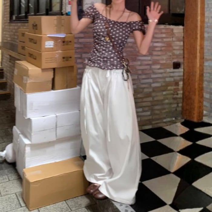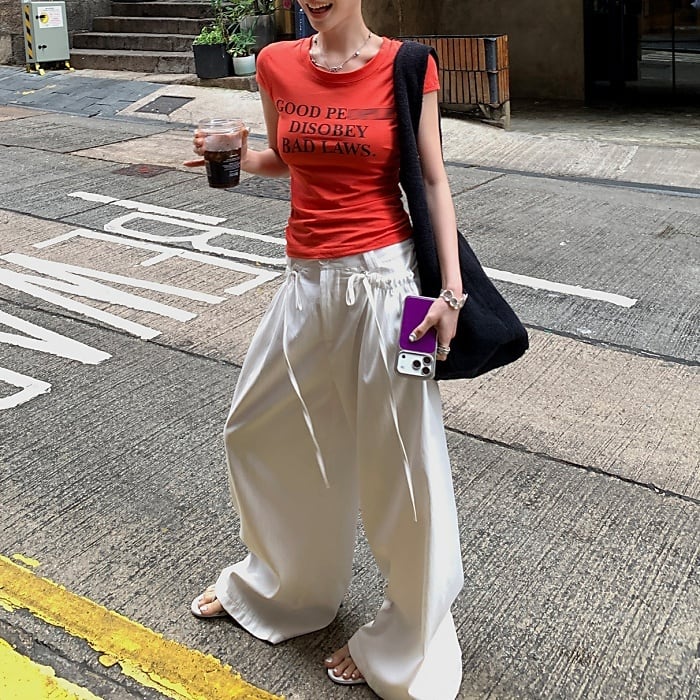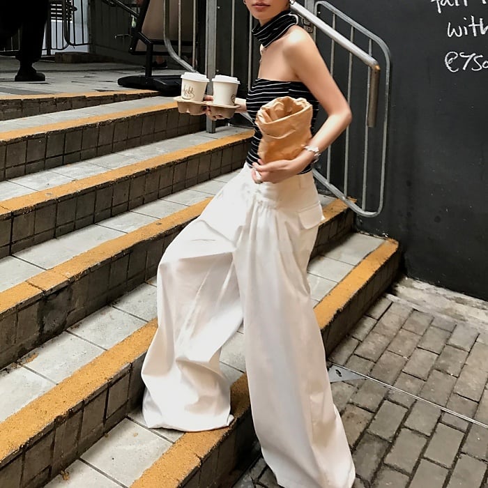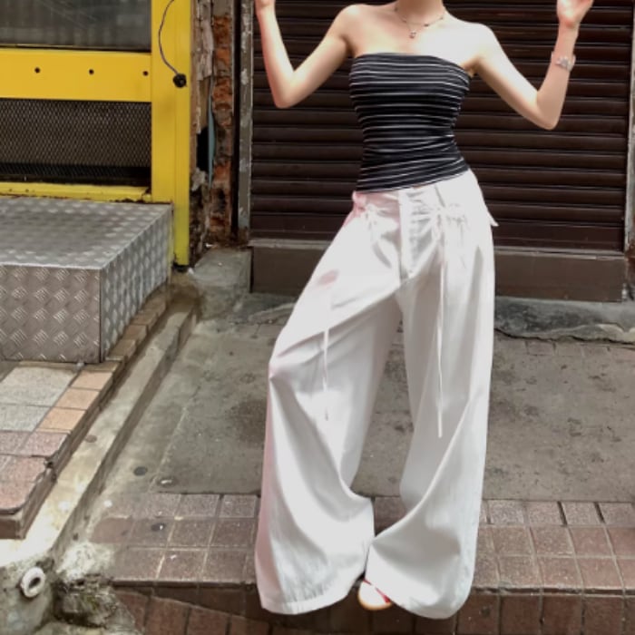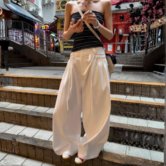 ドローストリングポケットワイドレッグパンツ[S-L]