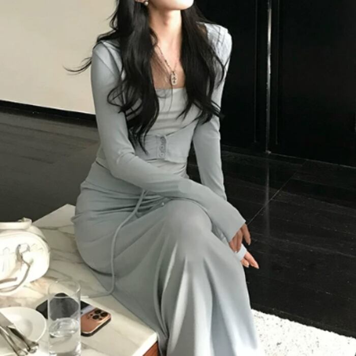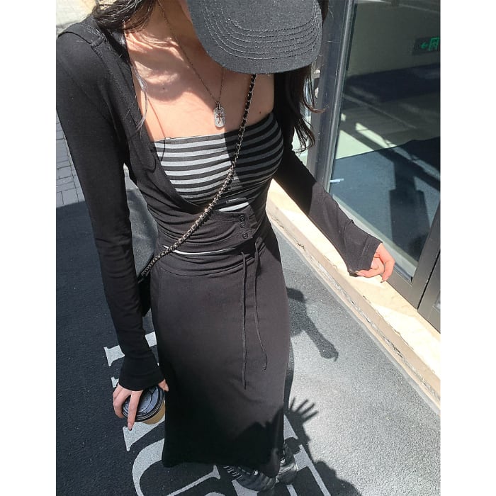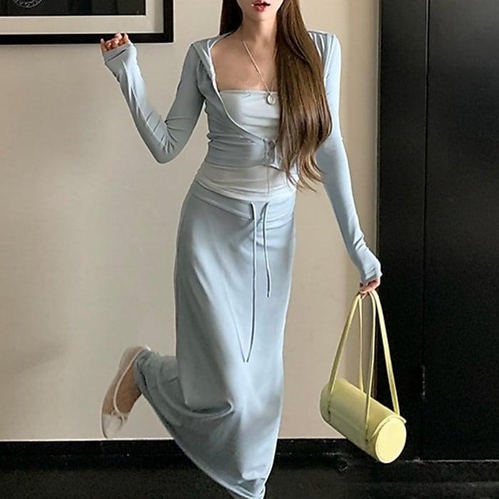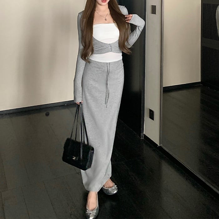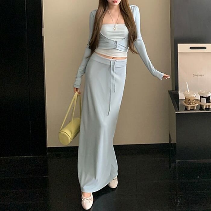 ディープUネッククロップドパーカースカート セットアップ[XS-L]