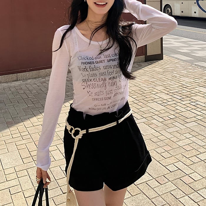 テンセルウールプリントクルーネックTシャツ[XS-L]