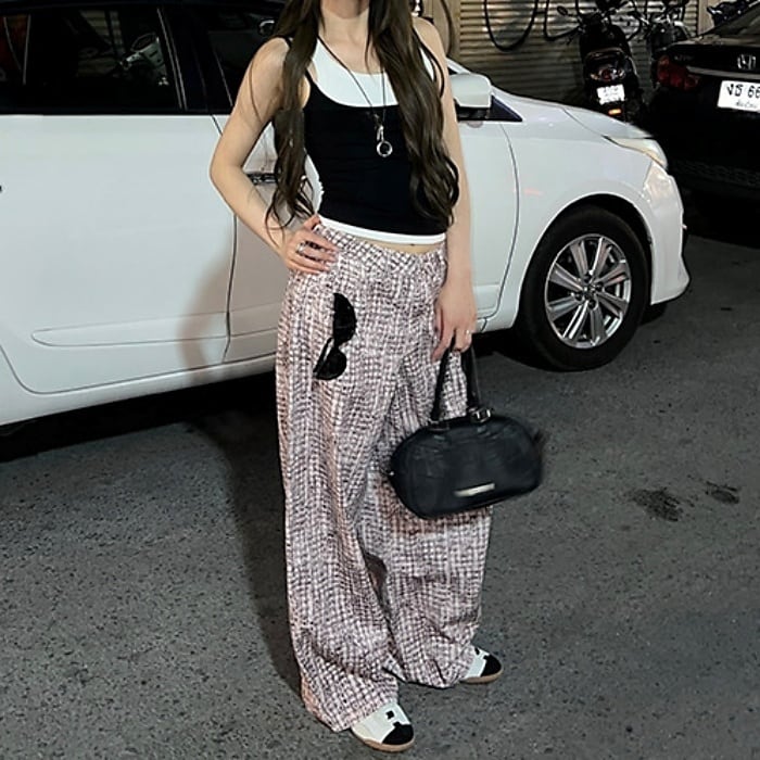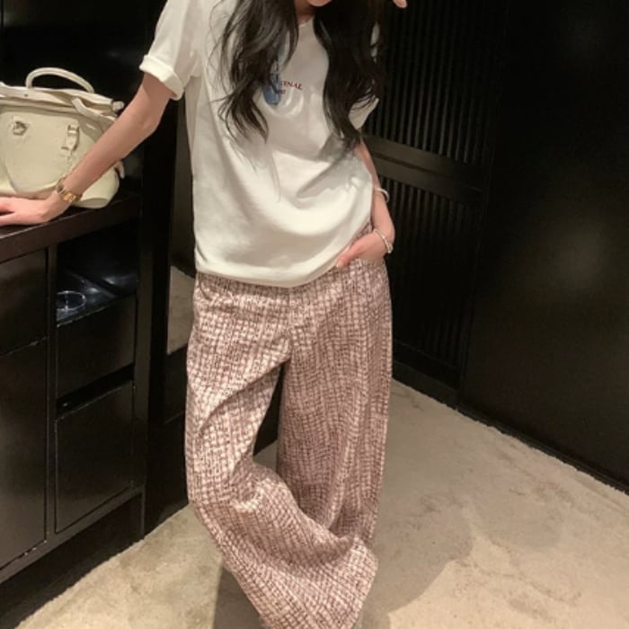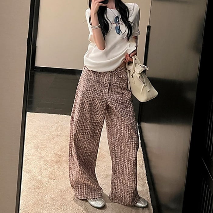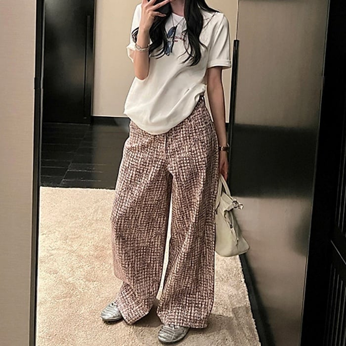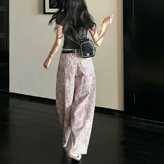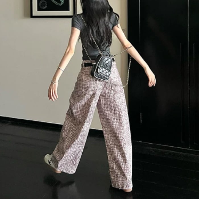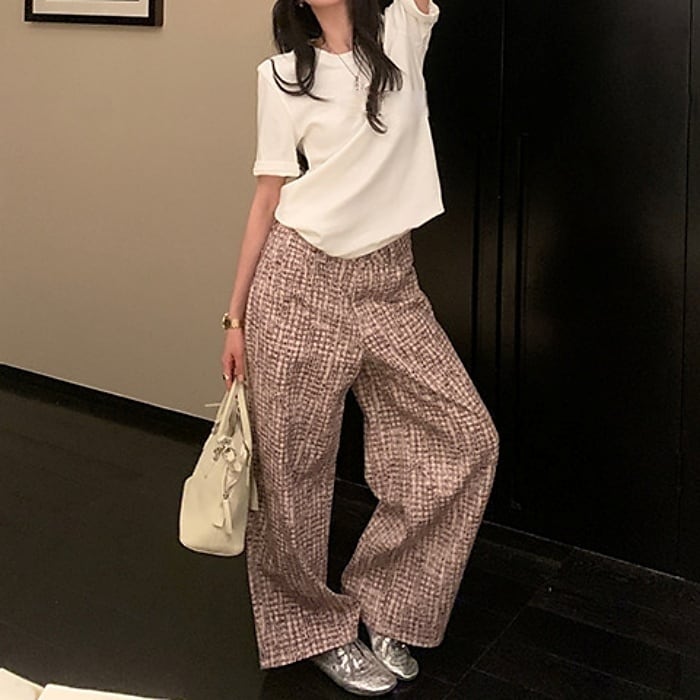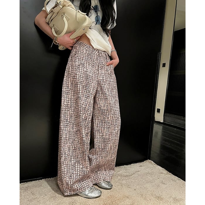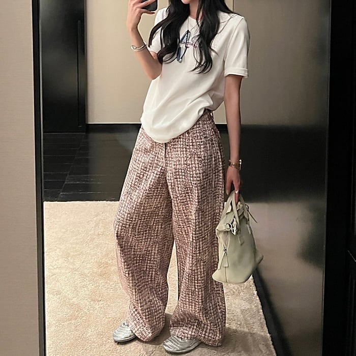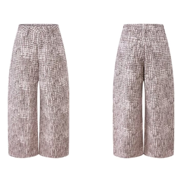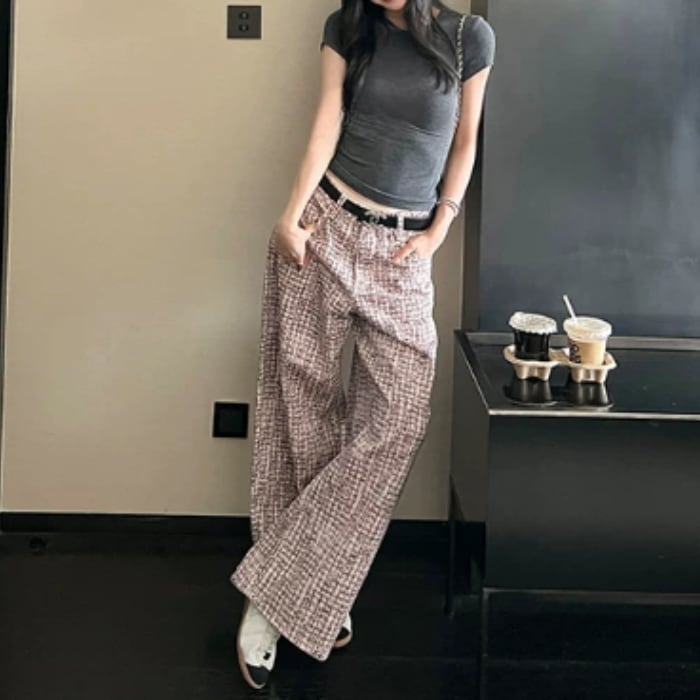 ツイードチェックパターンストレートデニムパンツ[XS-XL]