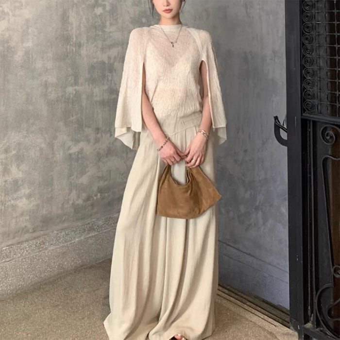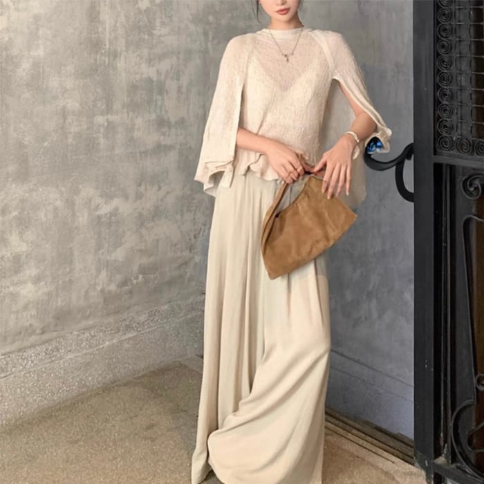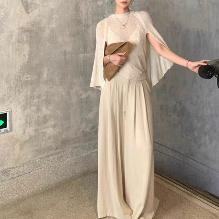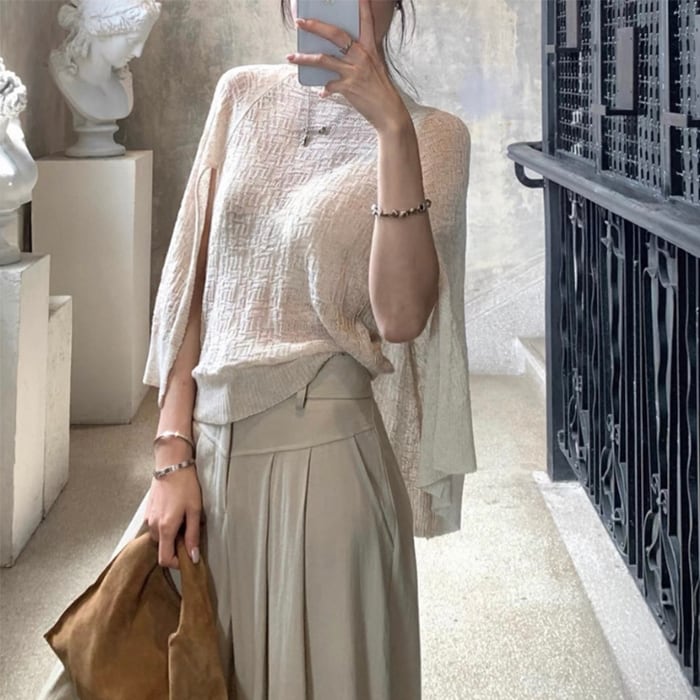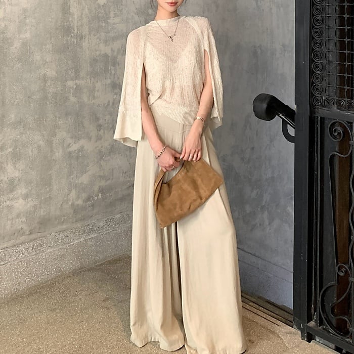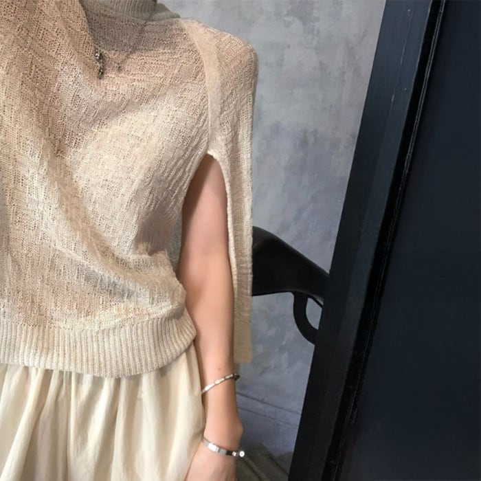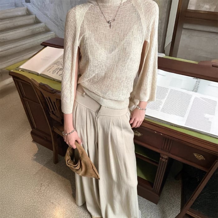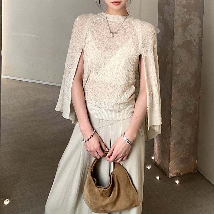 ショールデザインフェイクレイヤードシアーニット[S-M]