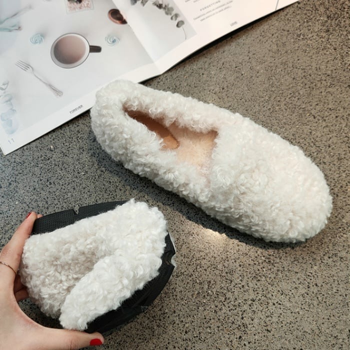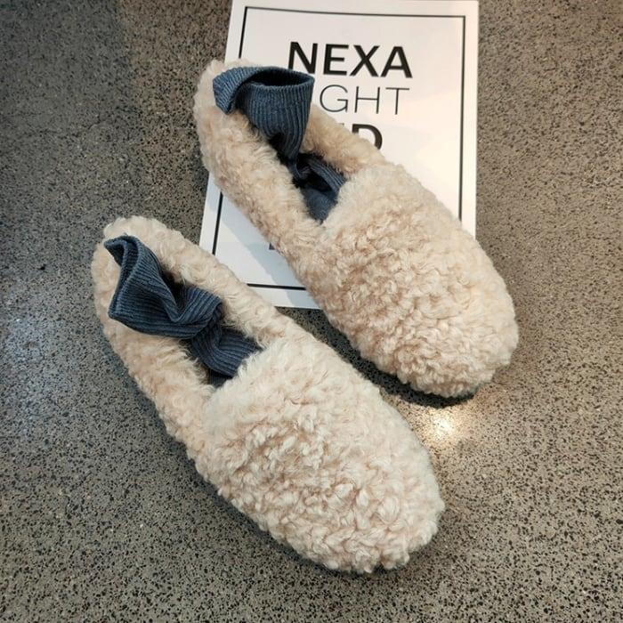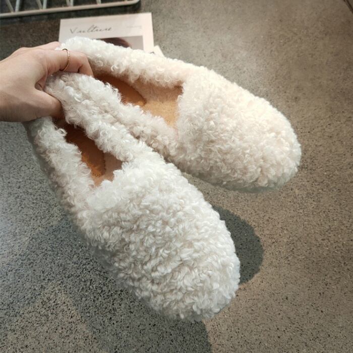 ロングボアを使用したボリューム感のある人気のボアフラットシューズ。足元にボリュームがでるので、スキニーデニムやレギンスなどのスリムなボトムと相性抜群です。