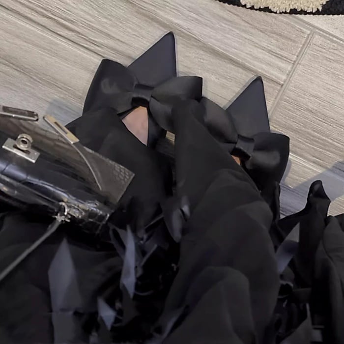 ビッグリボン サテンフラットシューズ[35-39インチ]