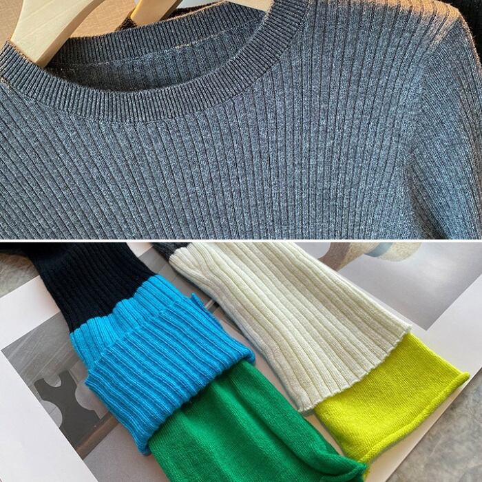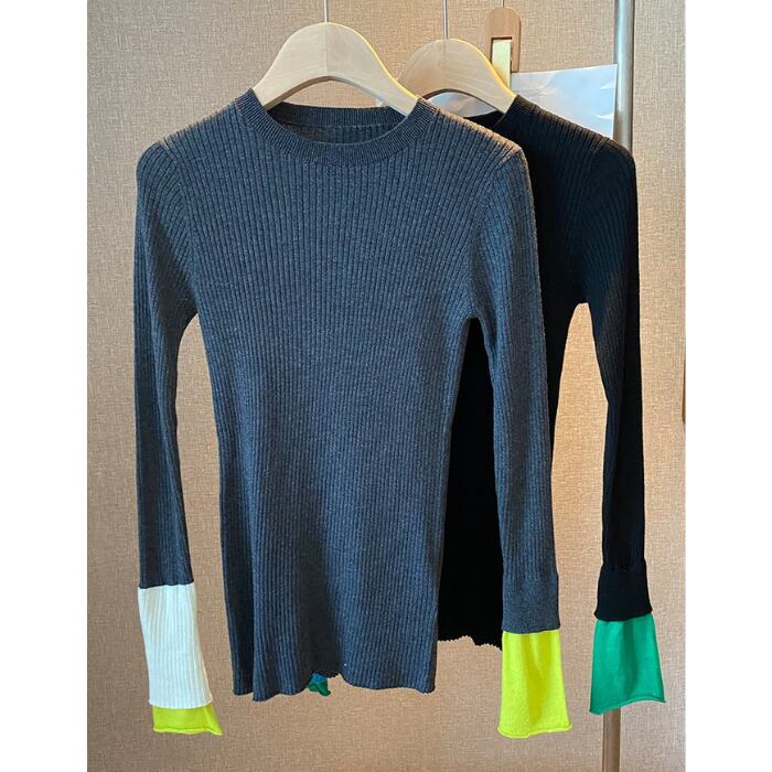 カラーブロック スリムリブニット[S-L]