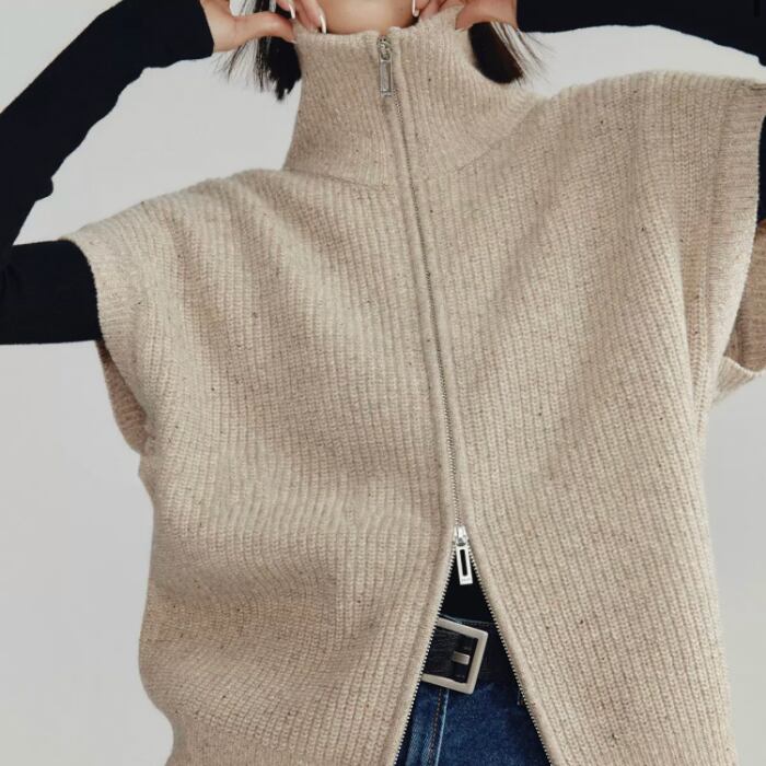 ダブルジッパー ハイネックニット[S-L]