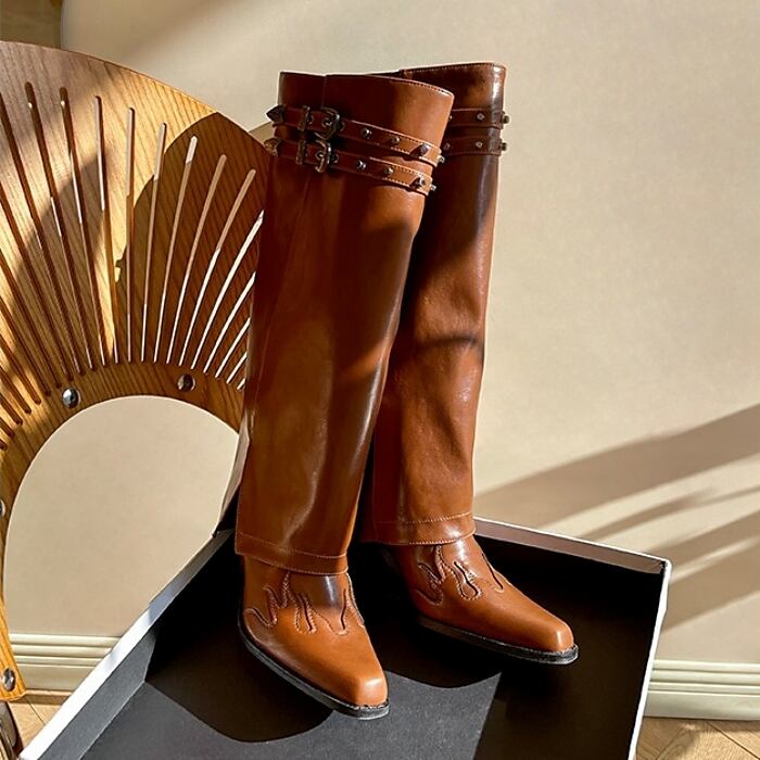 旬のカバーデザインにウエスタン要素をプラスしたロングブーツ。スタッズ付きのベルトがアクセントとなり、コーデにエッジを効かせてくれます!