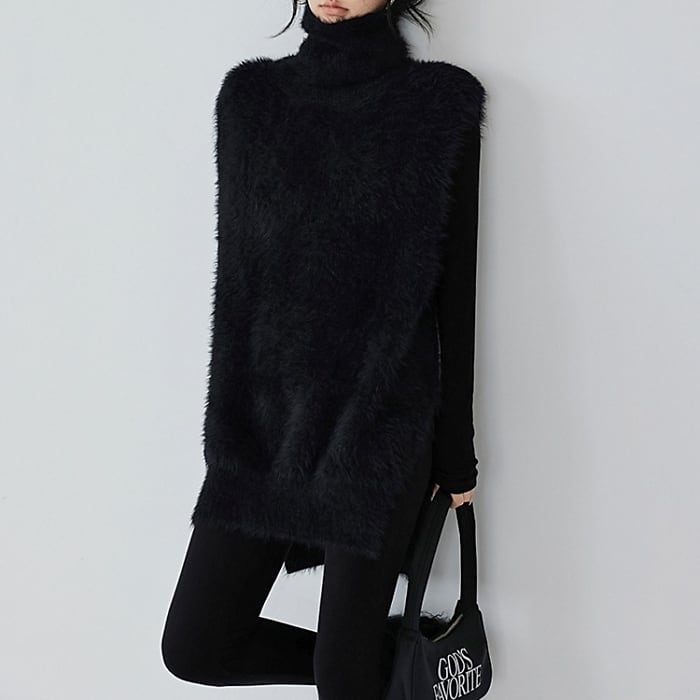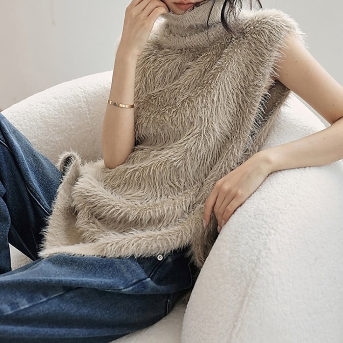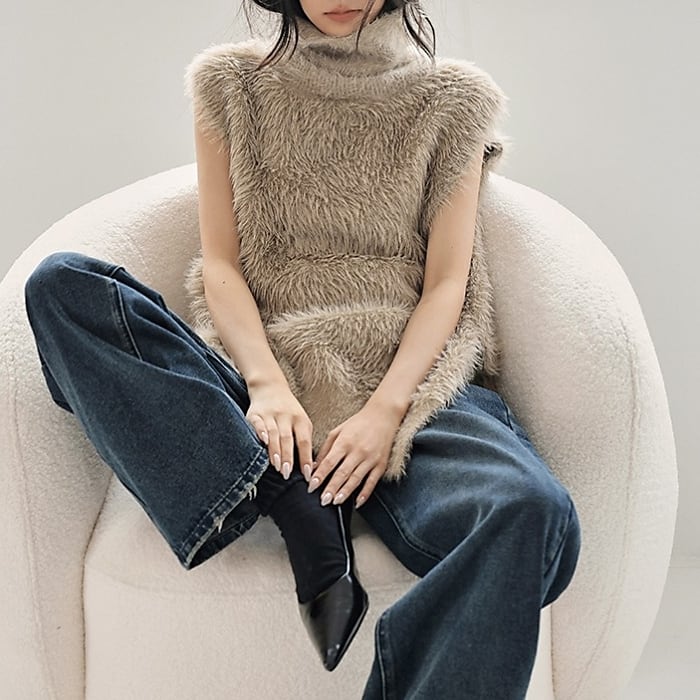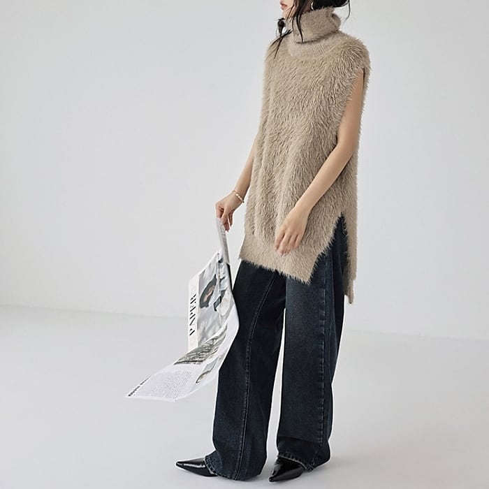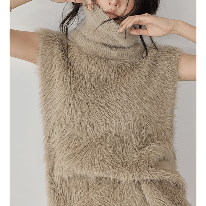 ノースリーブシャギーハイネックニット[S-L]