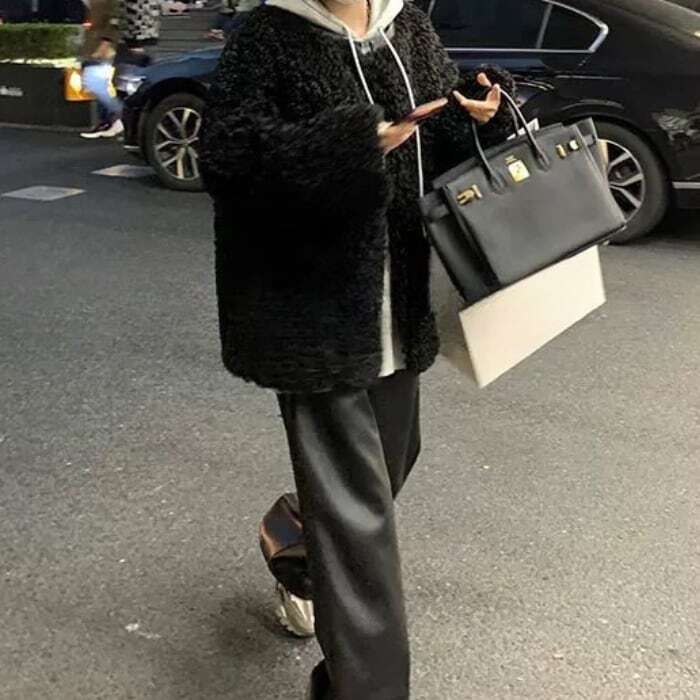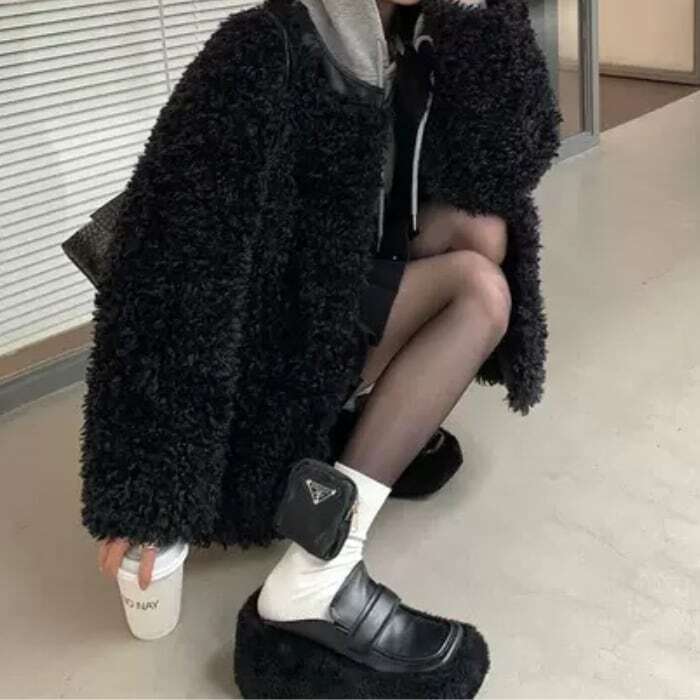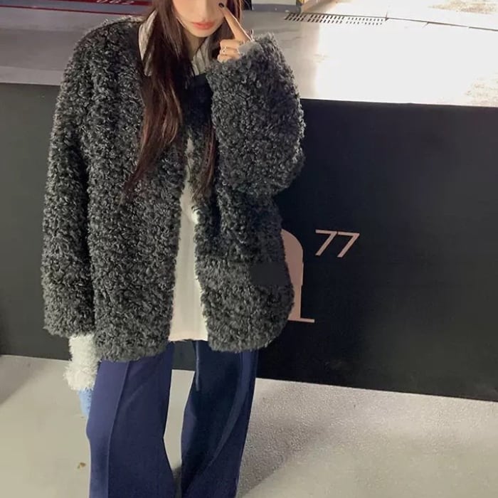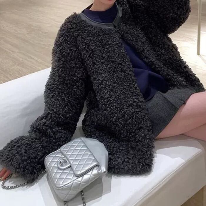 レザーステッチプードルエコファーコート[XS-L]