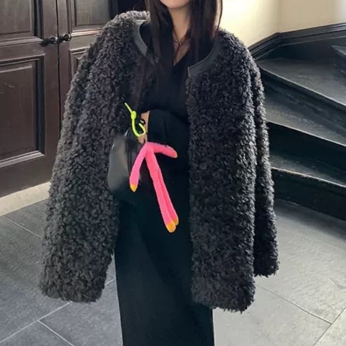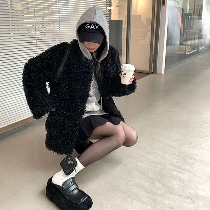 ふわふわのプードルファーがシーズンムードを高めてくれるエコファーコート。