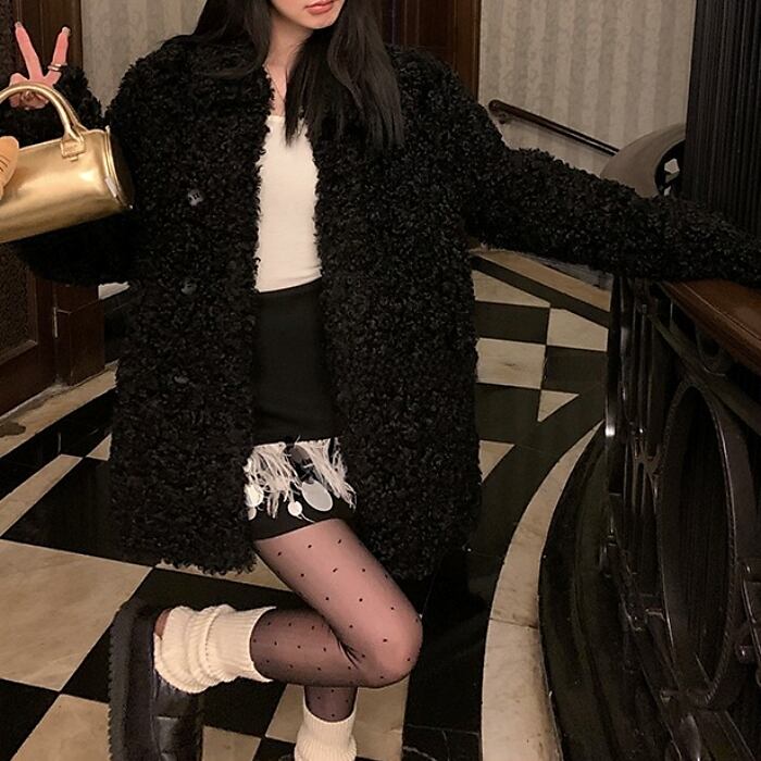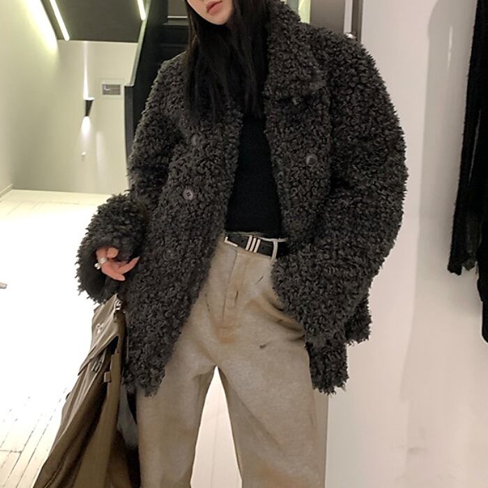 ボリュームカーリーエコファーコート[XS-L]