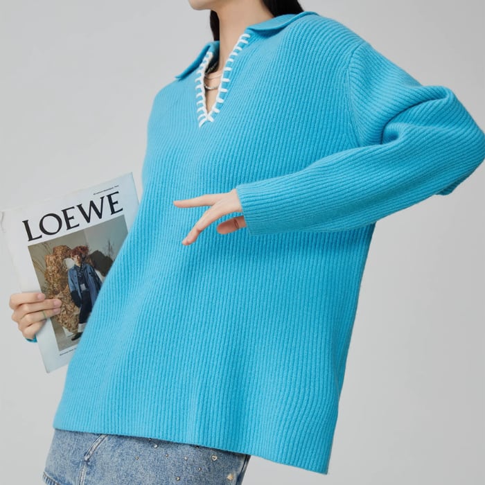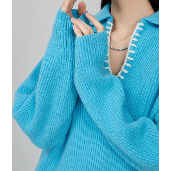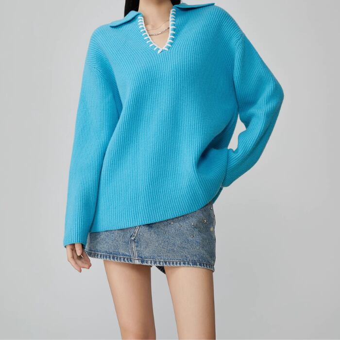 キーネックルーズニットプルオーバー[S-XL]
