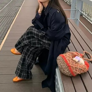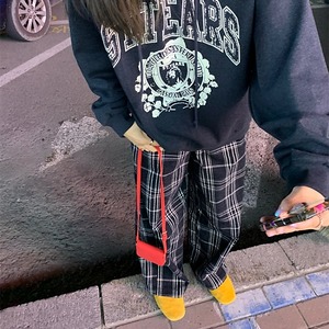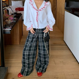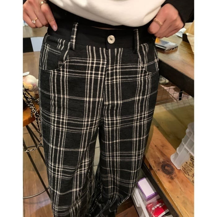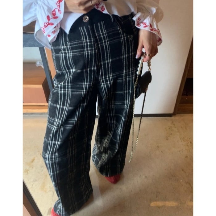 フロッキーチェックワイドレッグパンツ[S-L]