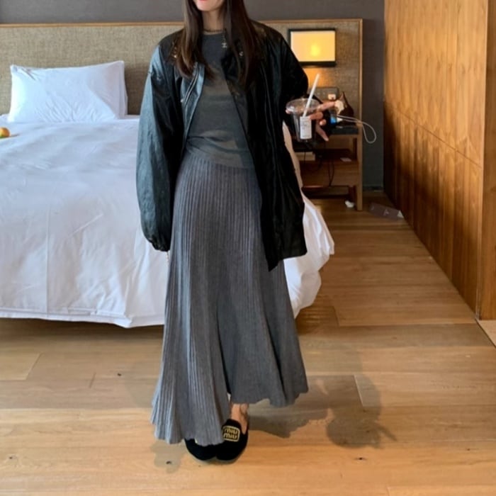 ニットプリーツフレアスカート[S-L]