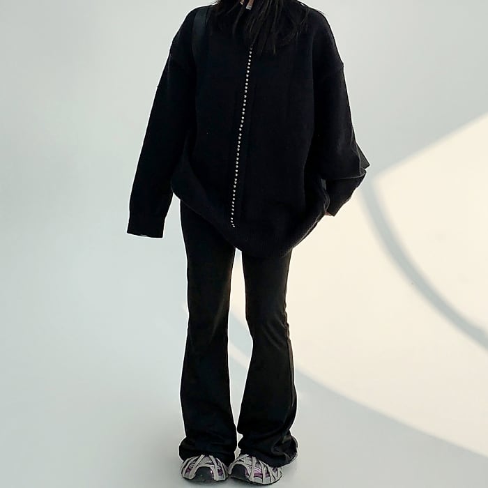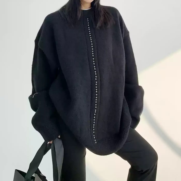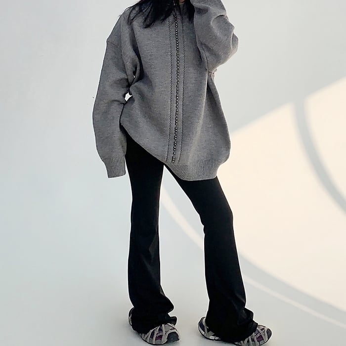 バーチカルビーズオーバーサイズニット[M-XXL]