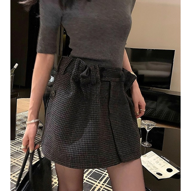 レッドチェックウールブレンドショートパンツ[S-L]